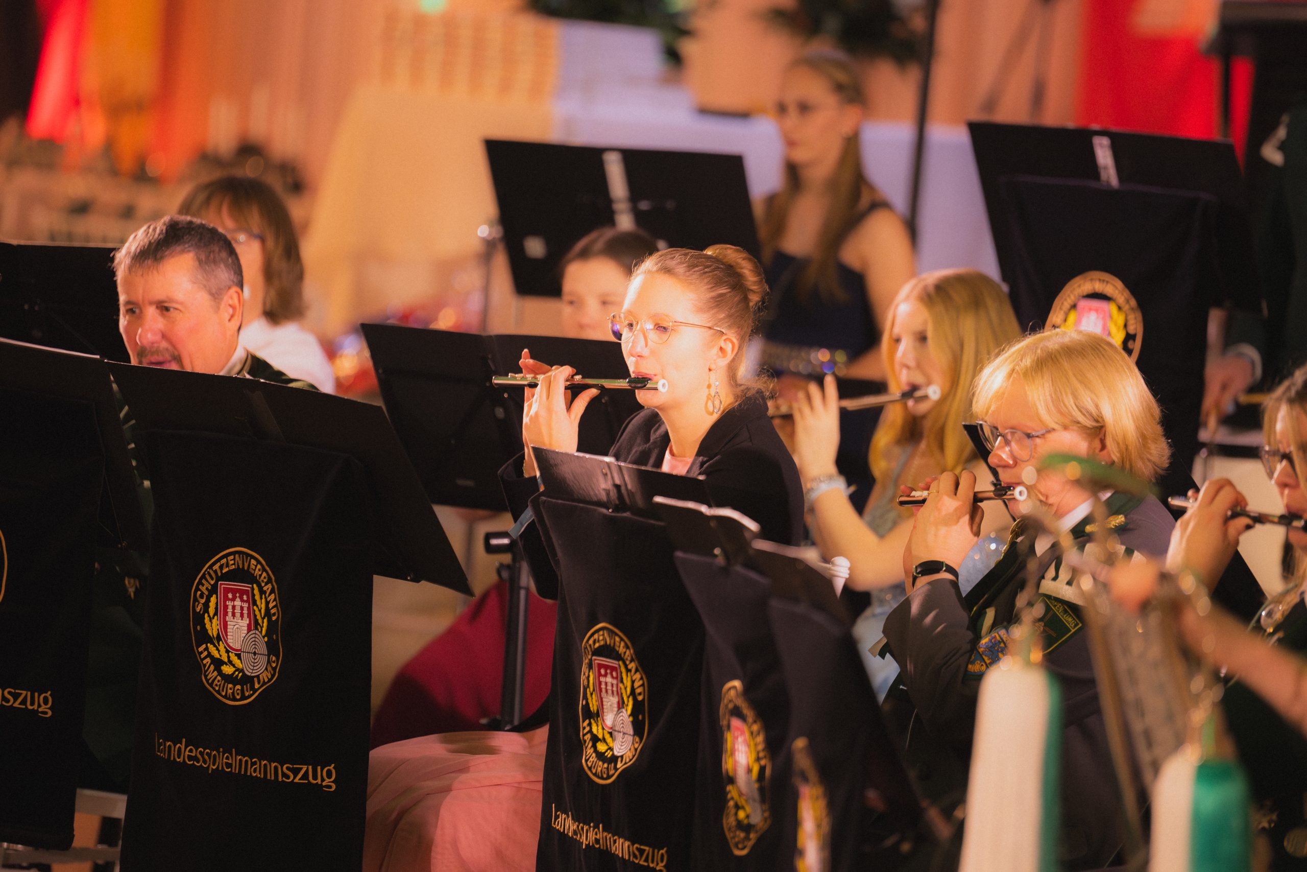 Mit beeindruckenden Märschen, schwungvollen Melodien und präziser Performance begeistert der Landesspielmannszug bei offiziellen Veranstaltungen des Schützenverbandes Hamburg.